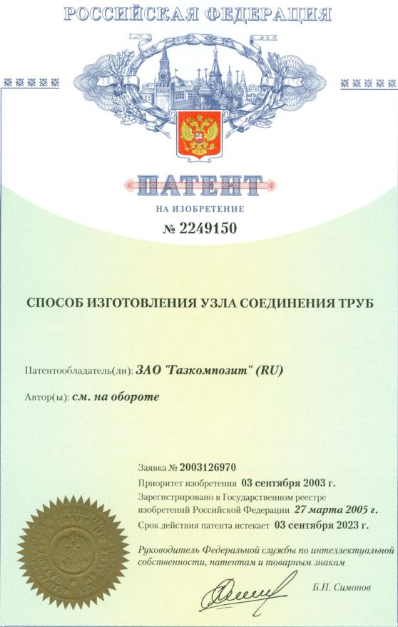 Патент "Способ изготовления узла соединения труб"