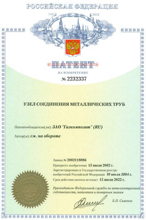 Патент "Узел соединения металлических труб"